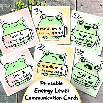- Energy Levels Communication Cards: 16 filled in and +16 blank communication cards
