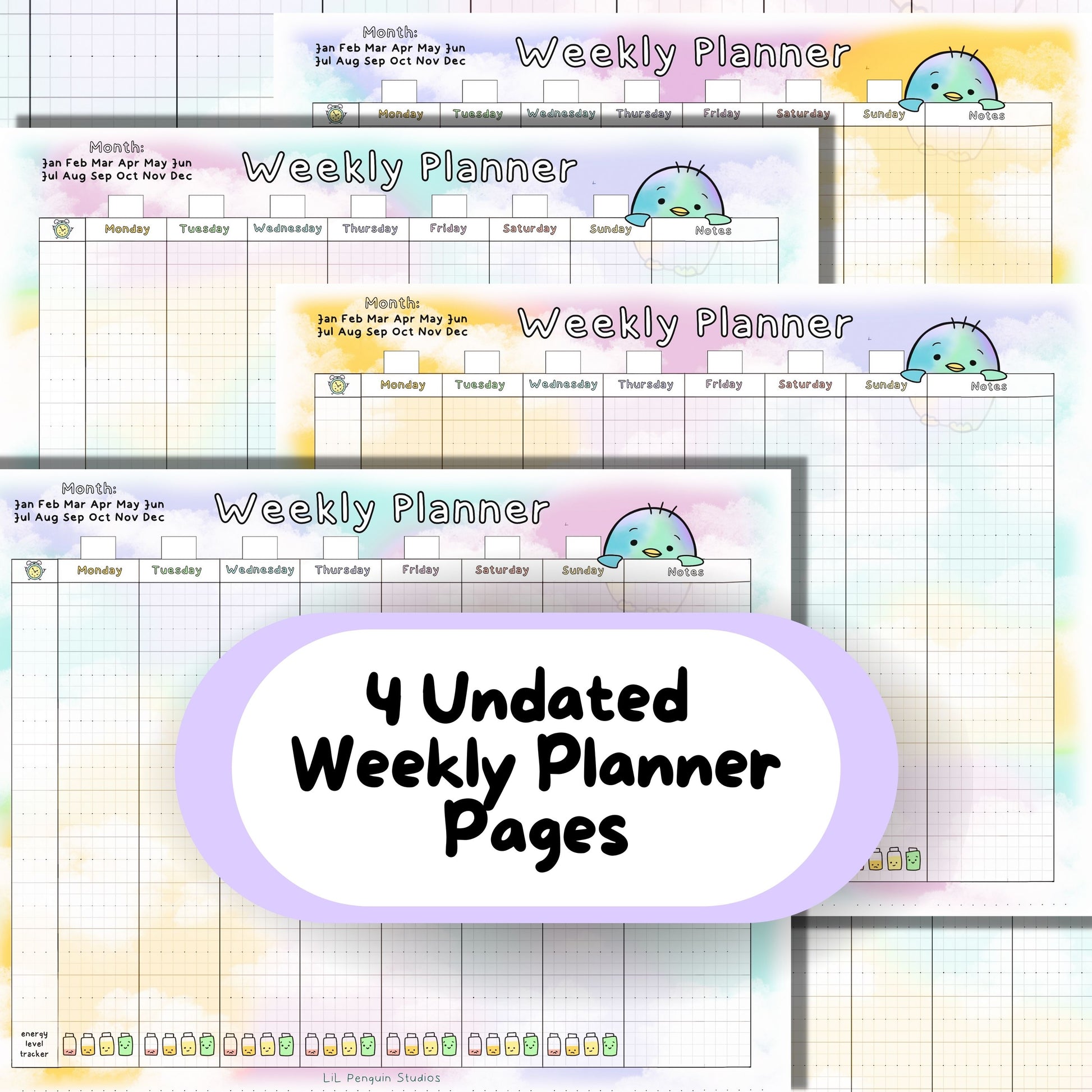 - 4 weekly planner pages (same design, slightly different colors)