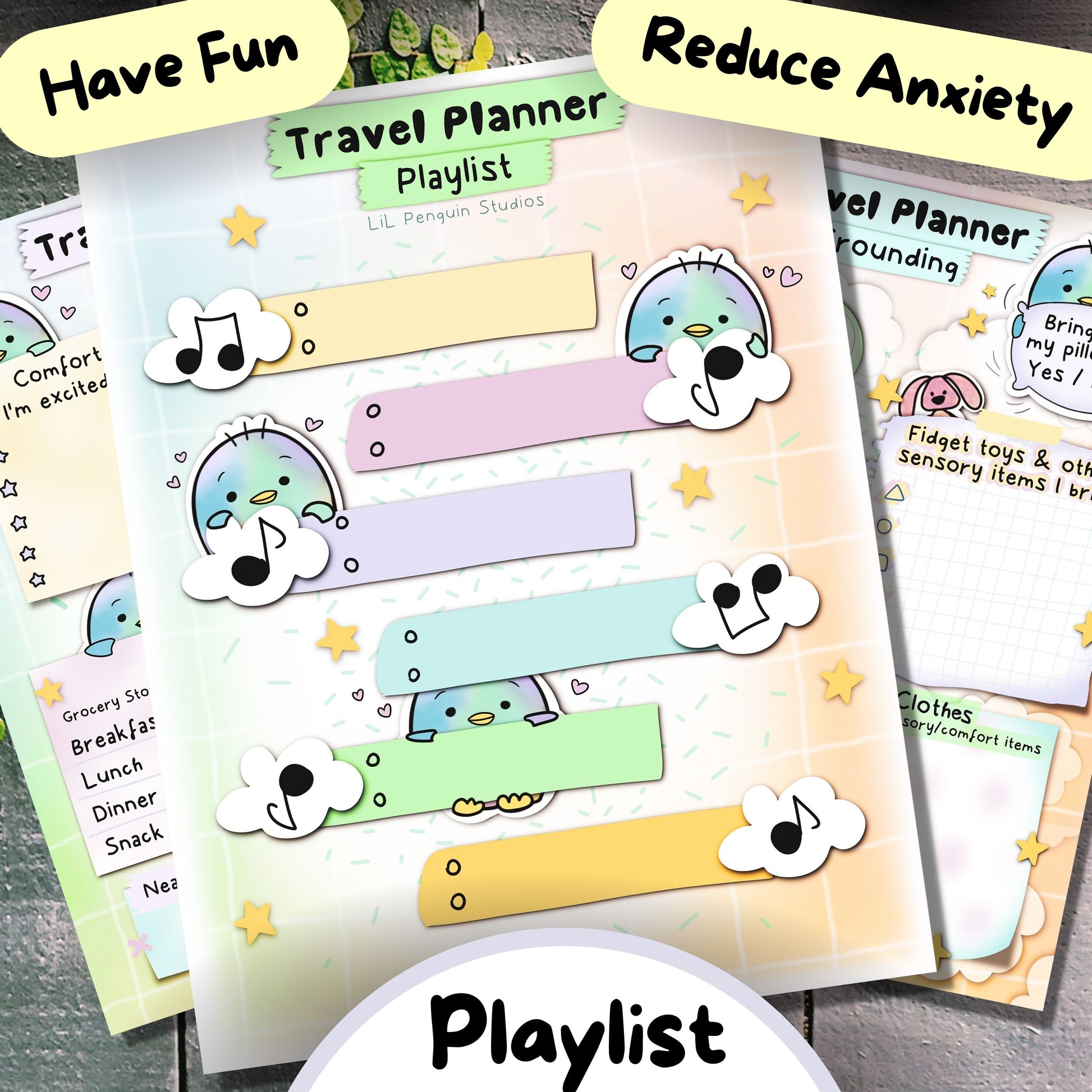 - 3 planner pages to reduce anxiety: grounding, food, playlist