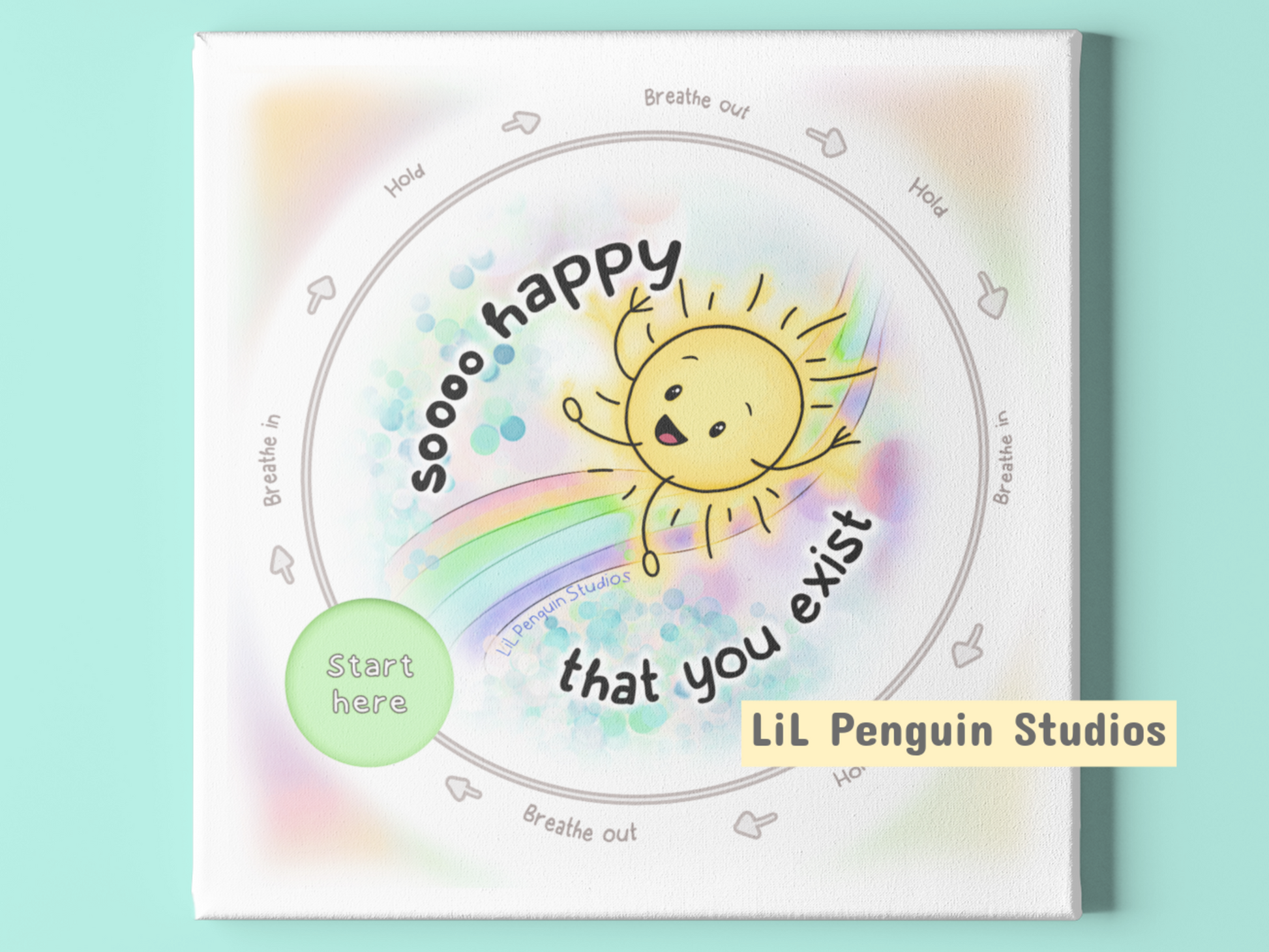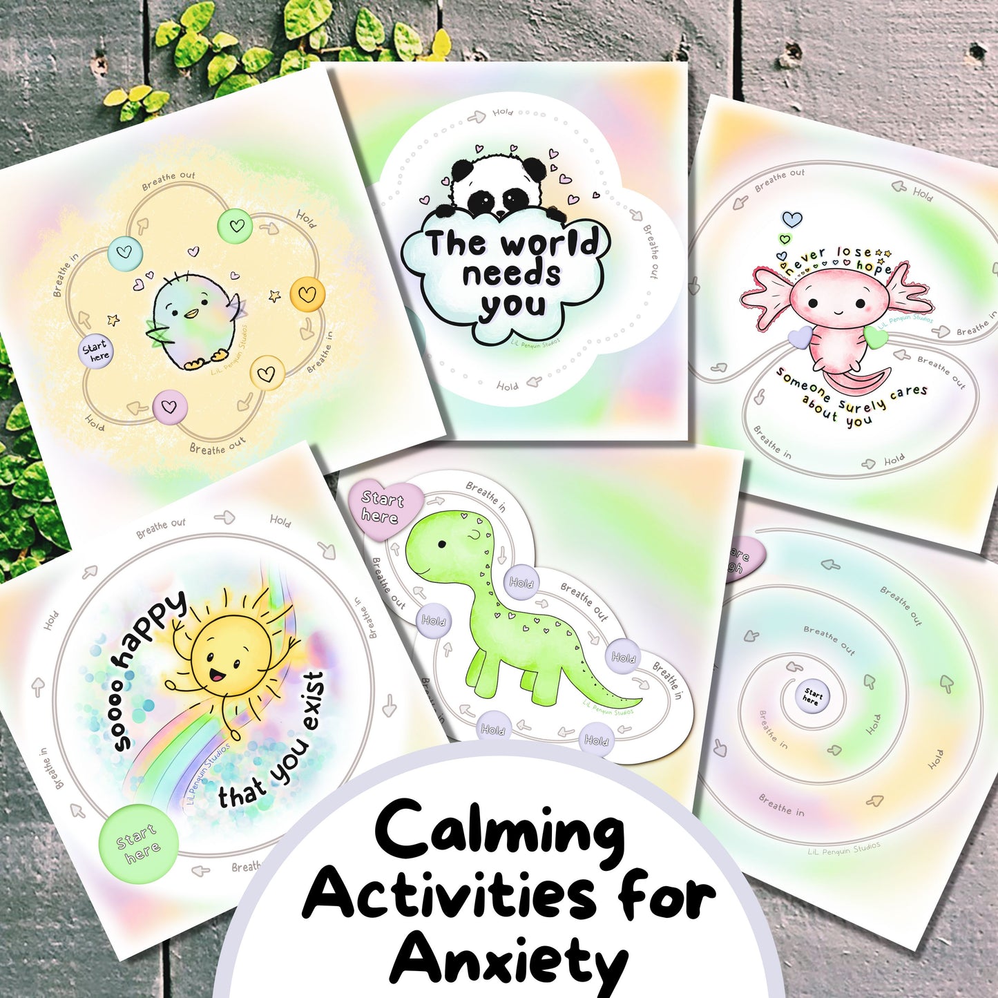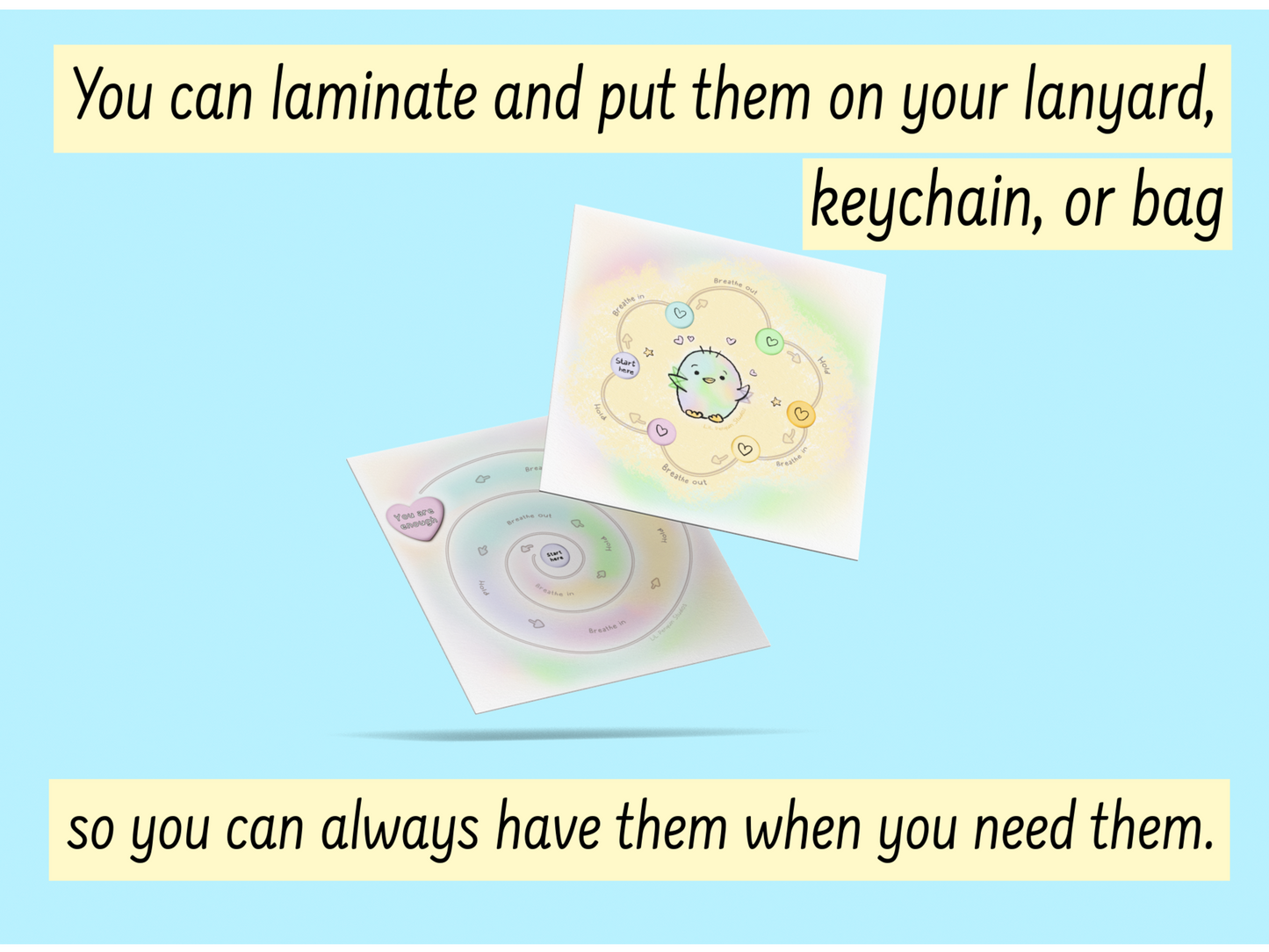 Slowly trace the grey line with your finger while you breathe in, hold and breathe out following the instructions on each page.