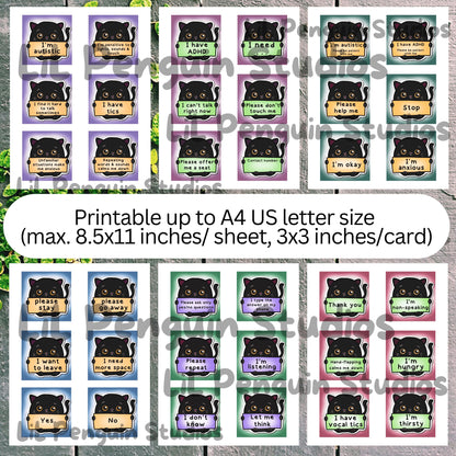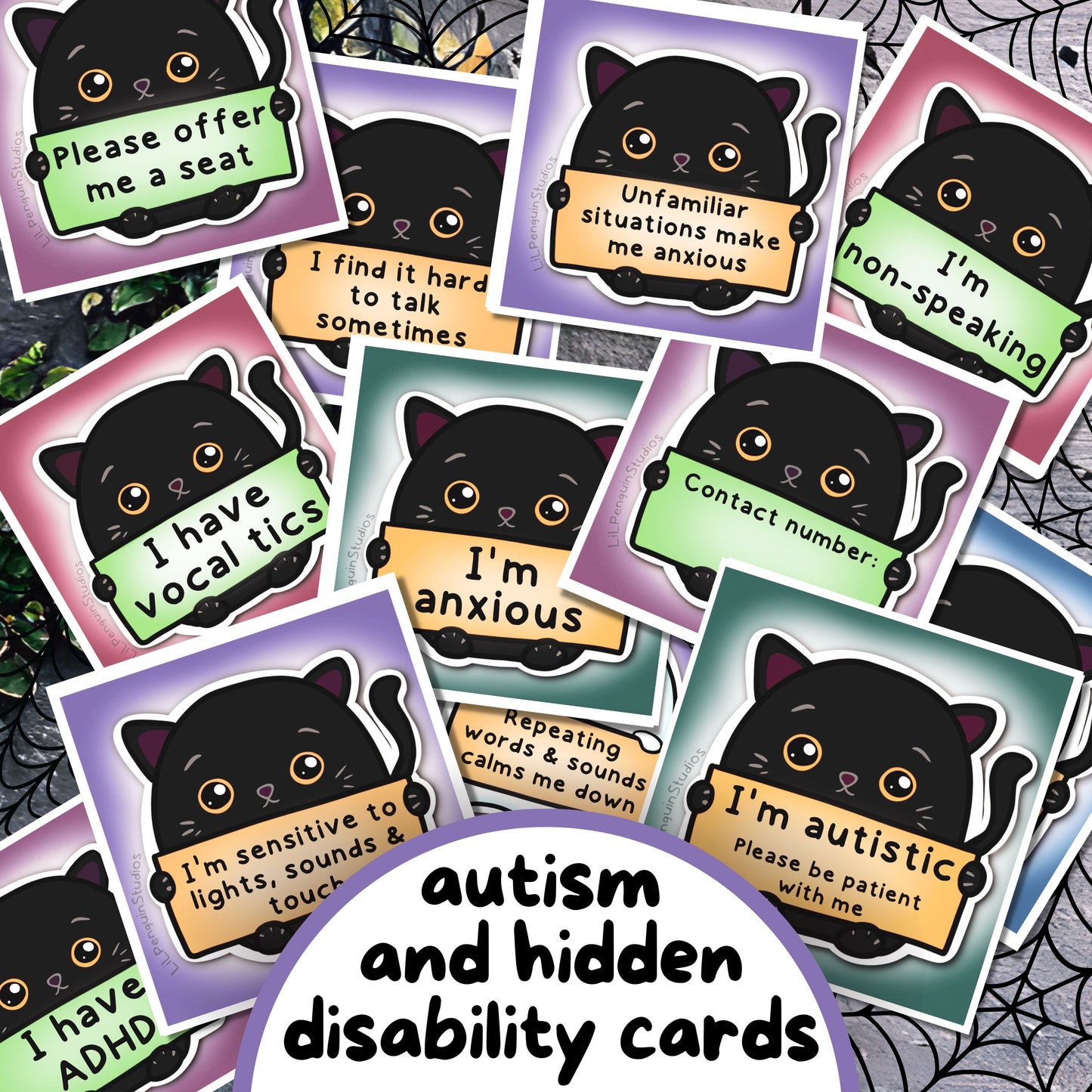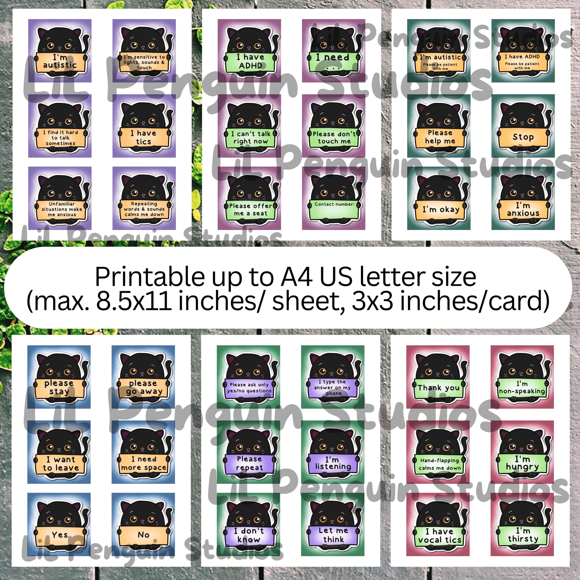 - 6 sheets (= 36 cards) (the texts on the cards are all different but the design is the same. The background color of the sheets are different). These are the similar design as my autism/ hidden disability badges. You can bring them with yourself anywhere, also, they are bigger and cheaper than badges.