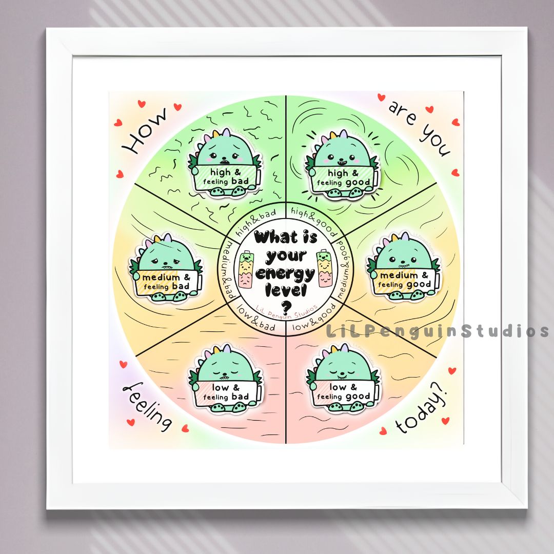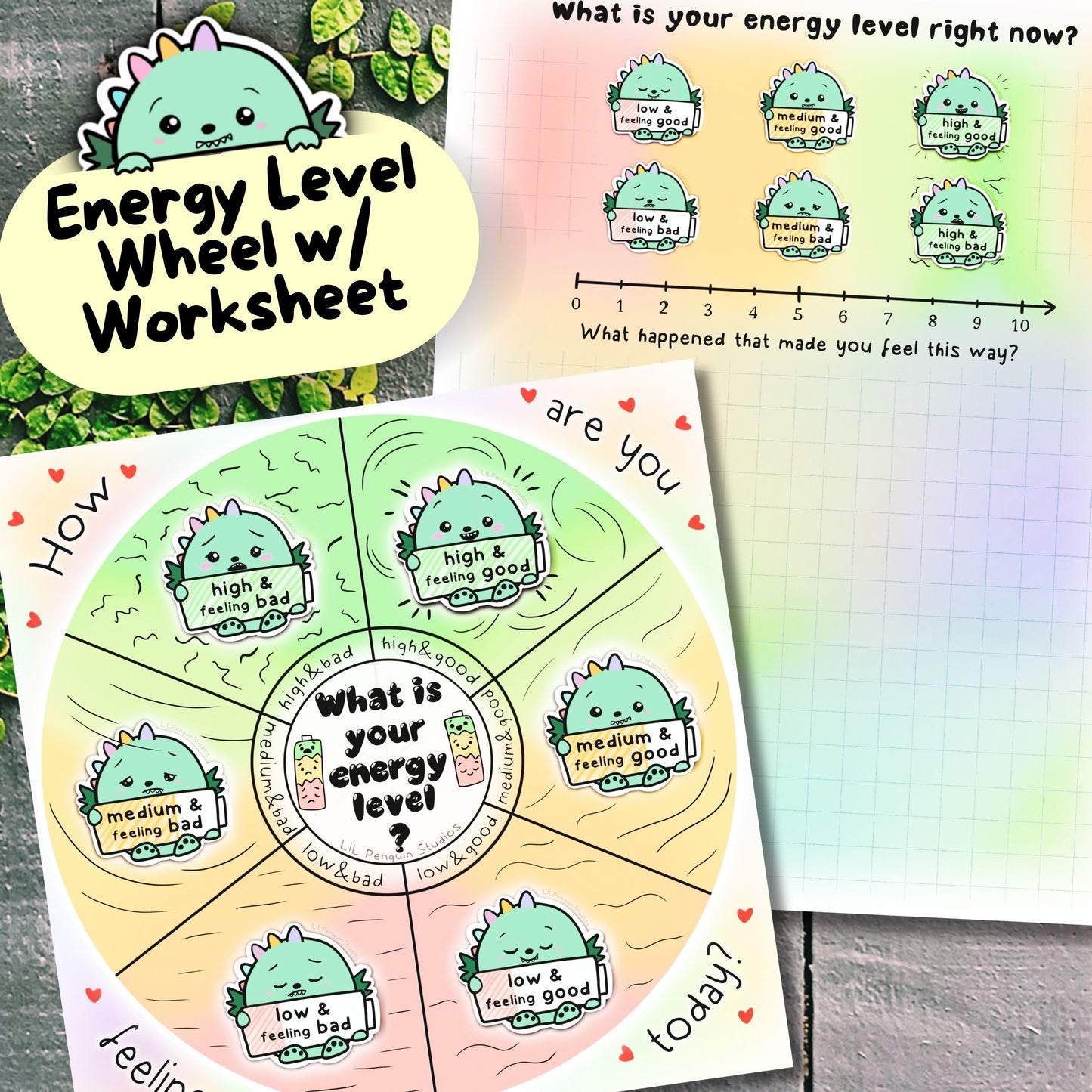 - Energy Levels Wheel: printable up to 10x10 inches so that you can use it as a poster too (you also get the card size and the A4 letter size versions separately for super easy printing)