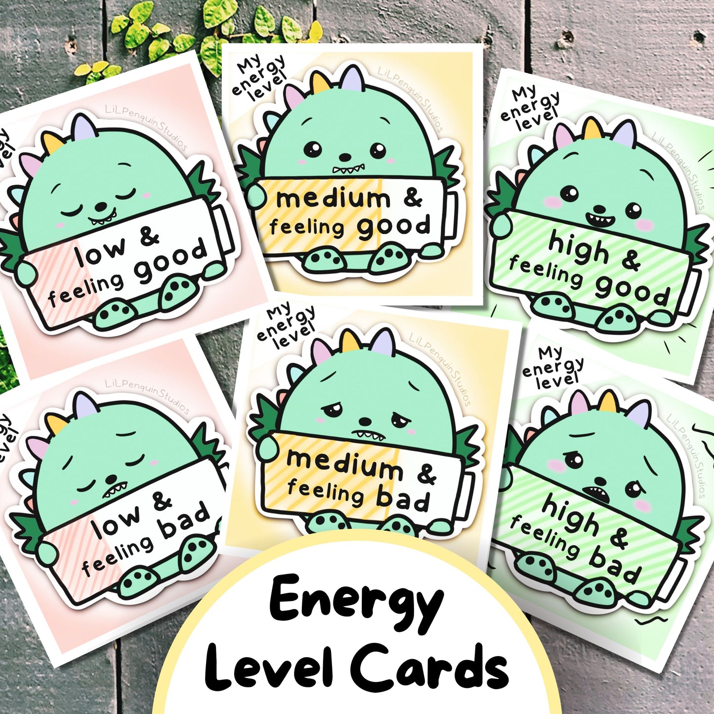 - Energy Levels Communication Cards: 16 filled in and +16 blank communication cards