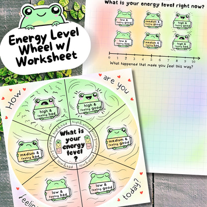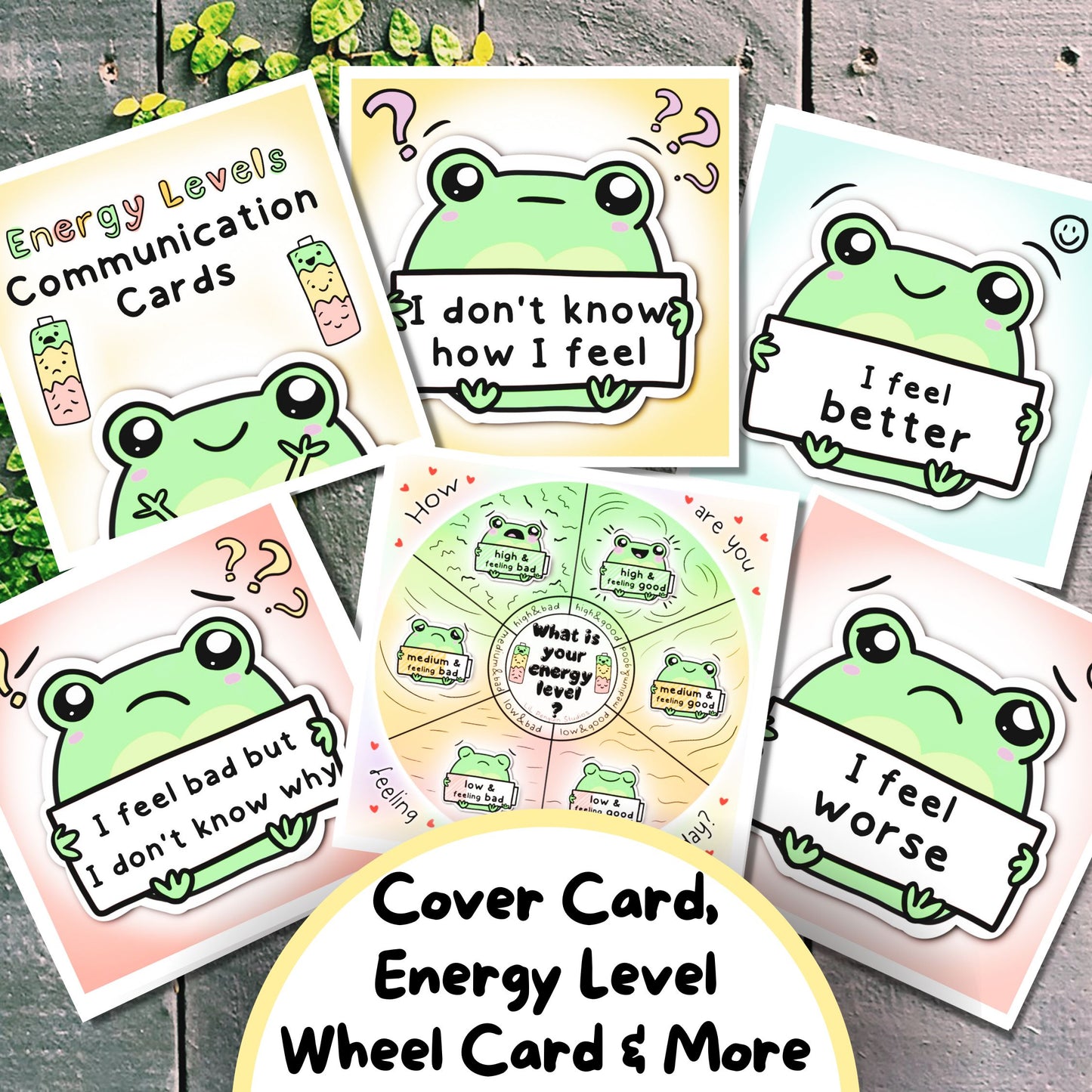 Frog Autistic Feelings and Energy Levels Bundle (Communication Cards, Emotions Wheel, Worksheets)