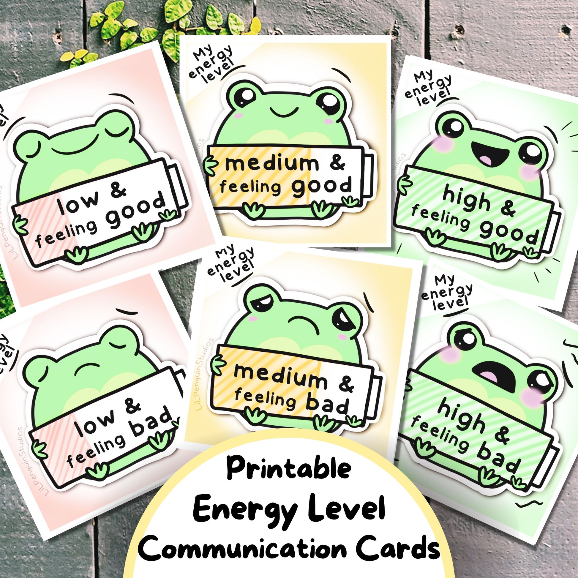 - Energy Levels Communication Cards: 16 filled in and +16 blank communication cards