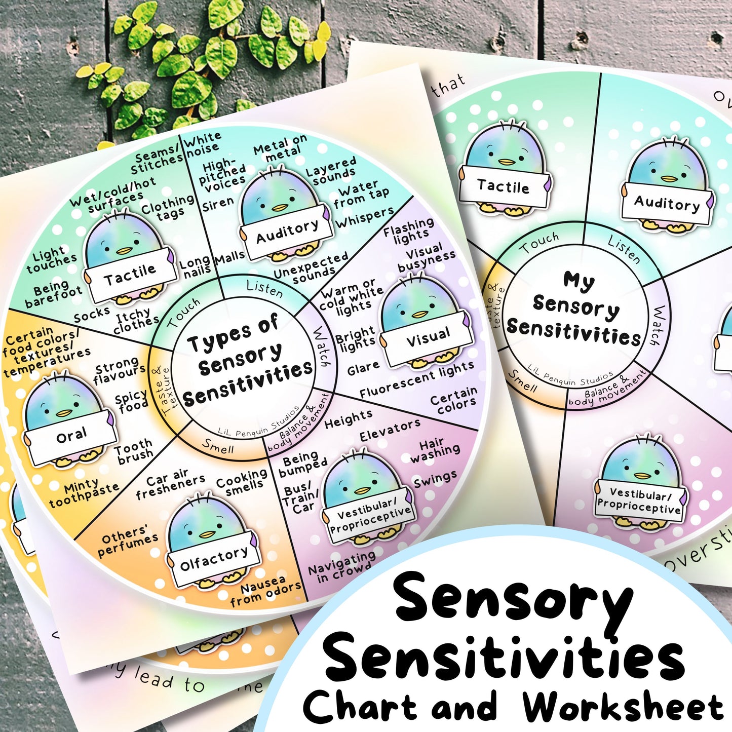 - Types of Sensory Sensitivities Wheel with a corresponding worksheet