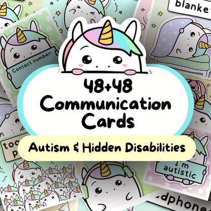 Unicorn 48+48 Daily Communication Cards (Autistic Meltdown, Sensory Overload, Hidden Disabilities)